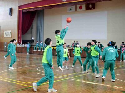 2つのクラスが学級閉鎖。暗く静まりかえった教室が2つ。ただ、登校している生徒達は皆元気です。3年生体育の授業、グラウンドが使えないため、体育館でバスケットボールです。いい汗かいてました!
