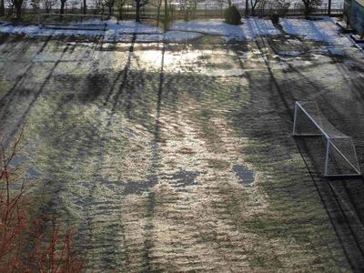 おはようございます。今日は良い天気です!朝の冷え込みにより、路面凍結が見られます。歩行には十分注意が必要です。グラウンドの雪はすっかり溶けましたが、凍って溶けての繰り返しで、しばらくは使えないでしょう。残念です。