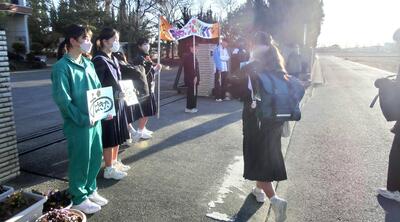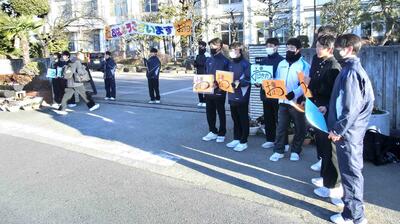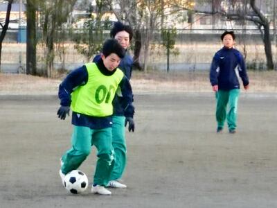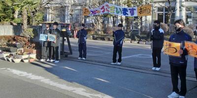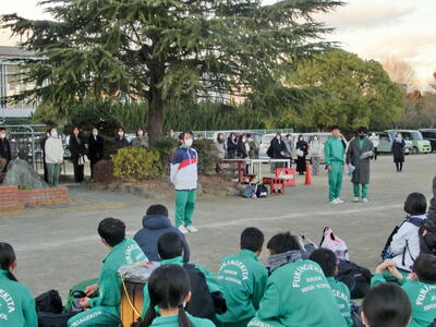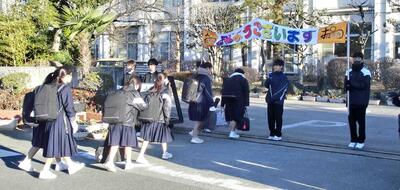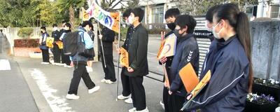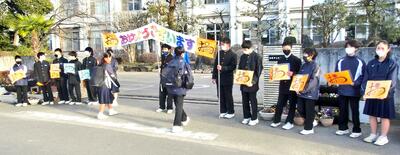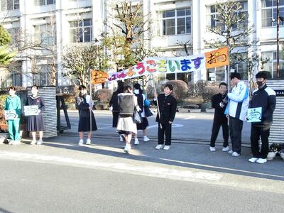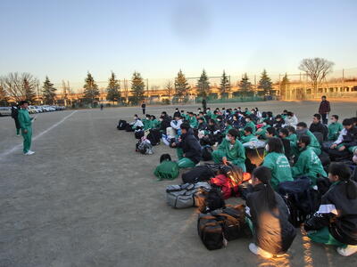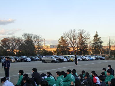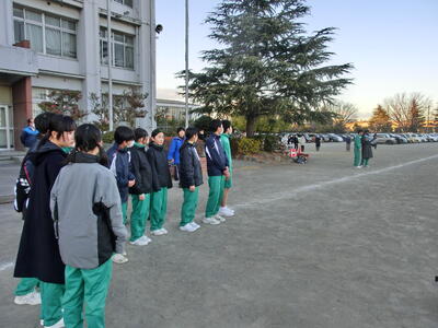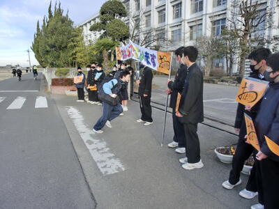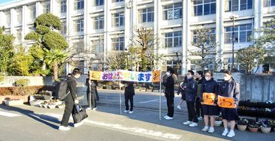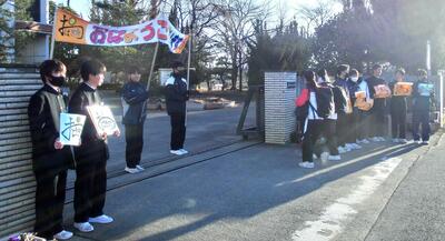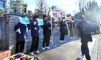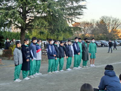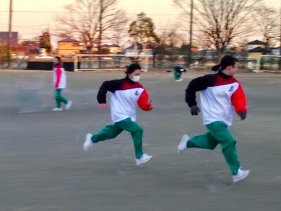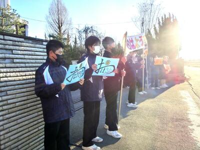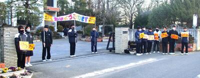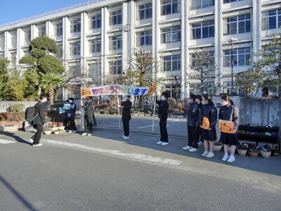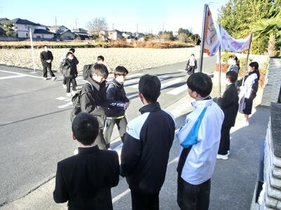 1月16日(火)、昨日の野球部に続き、今朝はサッカー部です。寒い朝ですが、みなさん大きな声であいさつを交わしましょうね!