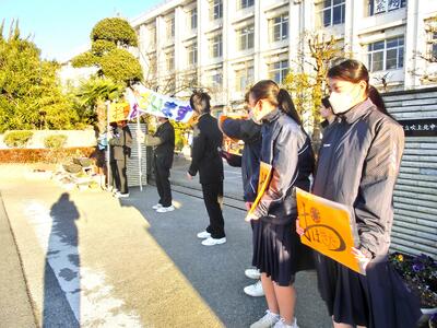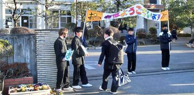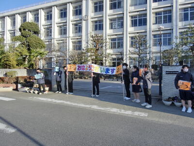 連日行われている朝のあいさつ運動「おはきた」、今朝は生徒会本部が行いました。寒いけれど快晴が続いています。気持ち良いあいさつで、気持ち良い朝を!
