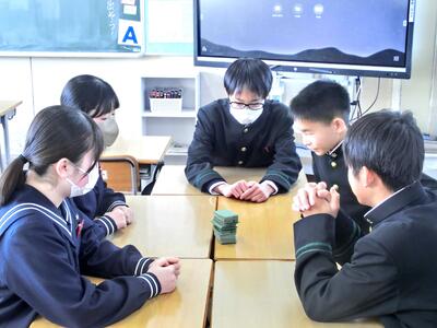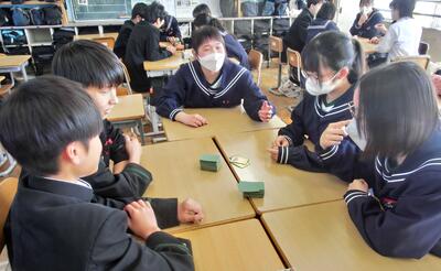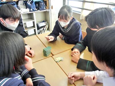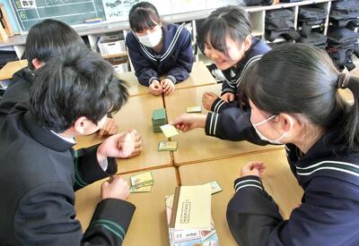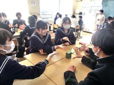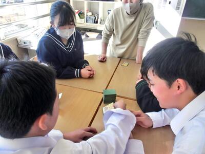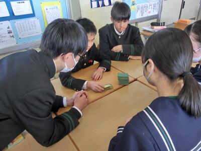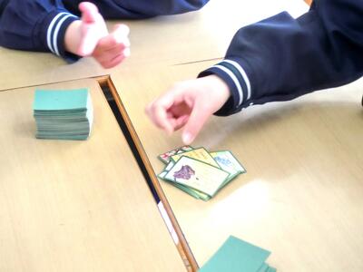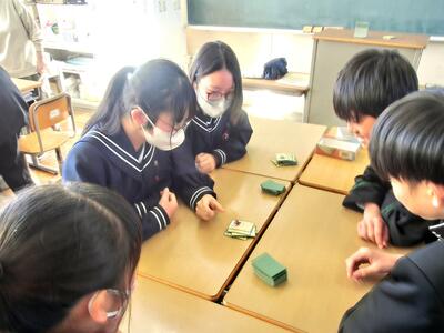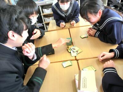 1月15日(月)、2年生の国語の授業で、百人一首をやっていました。残念ながらちょうど終わったところでしたが、多い人は53枚も取っていたようです。その後の坊主めくりは、坊主が出る度に歓声が上がっていました。とっても楽しそうでした。