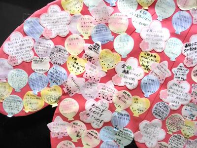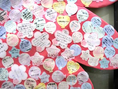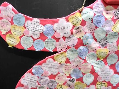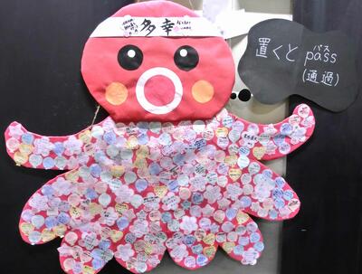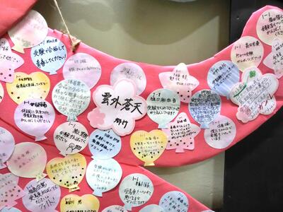 これから受験に挑む3年生へ、先生方・1,2年生全員でメッセージを書きました。今年はタコ「多幸」オクトパス「置くとPASS」です。3年生のみんな、心のこもったメッセージ、受け取ってください!