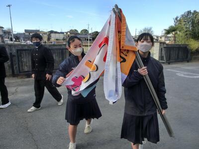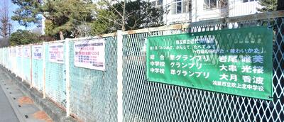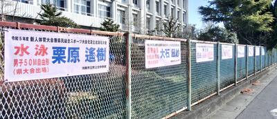 部活動新人戦の県大会に出場した部、美術コンクールの入賞者の横断幕がようやく完成しました。年をまたいでしまったため、随分日にちがかかりました。近くにお寄りの際は、是非ご覧ください。