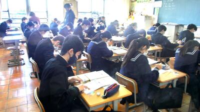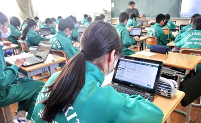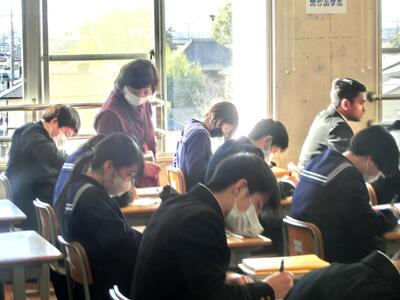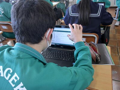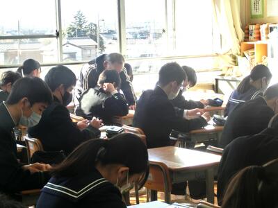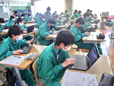 3時間目、1年生がCBT体験を実施しました。ほとんどの生徒は順調に終了できましたが、何人かはパソコンの不具合等でトラブルがあり、時間はかかりましたが終わりました。パソコンについて事前に状態を確認すること、充電を確実に行っておくこと等が今後の課題として分かりました。