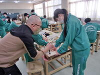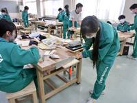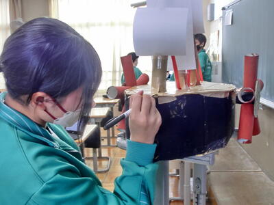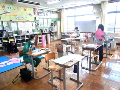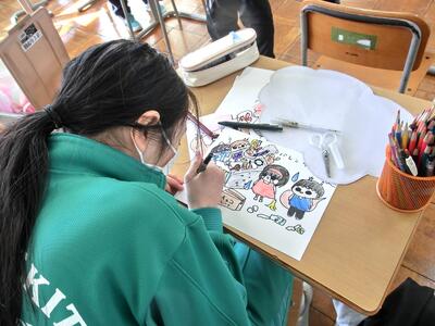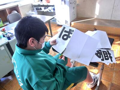 3年生の教室は、どのクラスの授業も真剣そのもの。黙々と問題に取り組む姿がありました。邪魔しないよう廊下からこっそり撮影です。さくら学級は「3年生を送る会」の掲示物づくりをしていました。