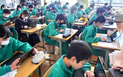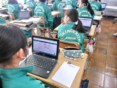 埼玉県学力・学習状況調査が来年度より紙ベースの調査からパソコンでの実施になることで、市内一斉にCBT体験を実施しました。今まで、調査用紙に記入していたものが、パソコンを操作しながら回答を打ち込むことになるため、複雑な操作ができる技能を正しく身につけていなければなりません。操作に時間がかかって、時間内に終了することができるかどうか、また、電波の障害がないかどうか心配です。