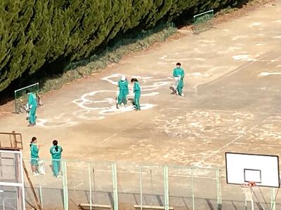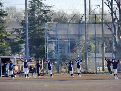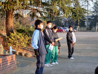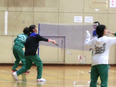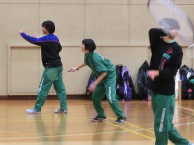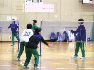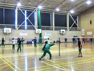 12月27日(水)、冷たい風が吹く中での野球部の練習、体育館での男女バドミントン部の練習です。明日は学校閉庁日のため、今日で2023年の練習納めとなりますね。