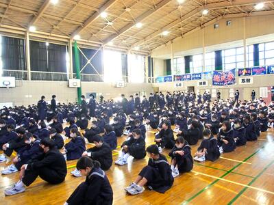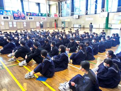 1月9日(火)、3学期が始まりました。ホームページをいつも見てくださっている皆様、本年もよろしくお願いします。輝いている生徒たちの姿をたくさんUPしていきたいと思います。始業式では皆元気な生徒の姿がありました。明日から1年生はスキー林間に出発します。始まってすぐですが、忘れ物のないように準備をして当日を迎えてください。