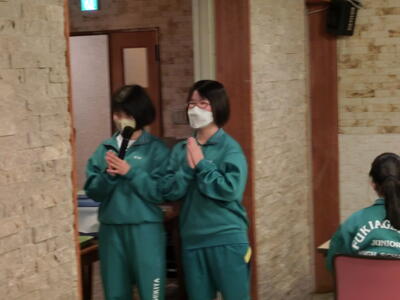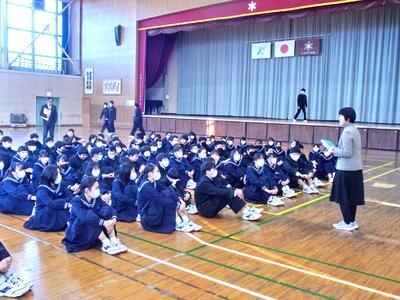 1年生は明日のスキー林間に向けて、最後の集会を持ちました。