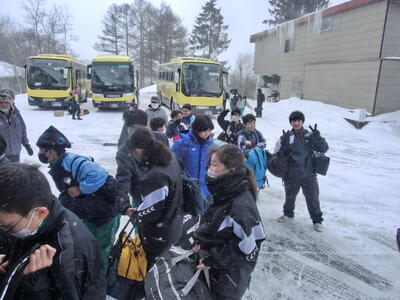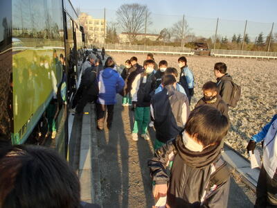 1月10日(水)、1年生スキー林間、いよいよ出発です!日の出を迎える前から集まり始めました。その気持ち良ーく分かります。楽しい3日間になりますように。現地より最新情報を今後もお届けします!