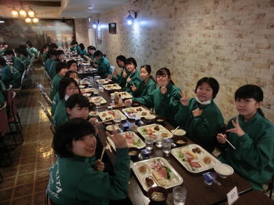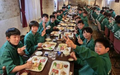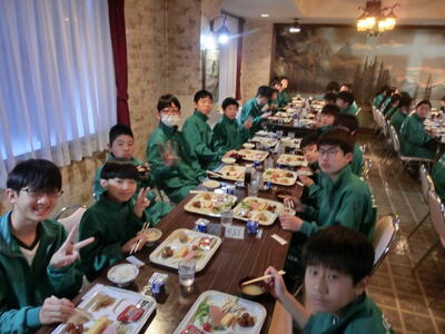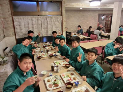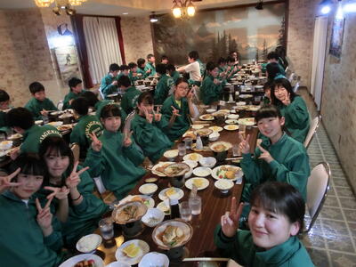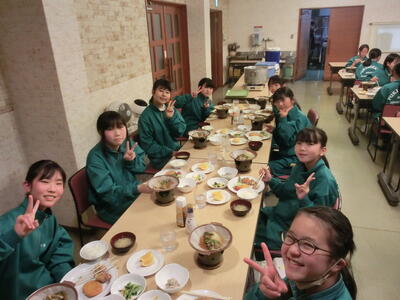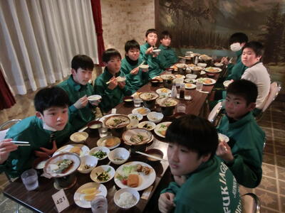 講習が終わり、お土産を買いました。みんな家族に買っていくそうです!その後スキー林間最後の夕食。楽しく話をしながら美味しくいただきました。