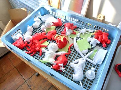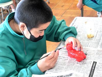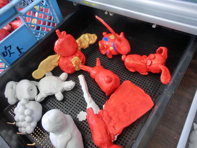 11月24日(金)、インフルエンザで閉鎖となっていたクラスが、本日より元気に復活です。さっそく「赤物」づくりに励んでいました。随分形になってきましたね。大量生産ができない「オンリー ワン」の作品です。