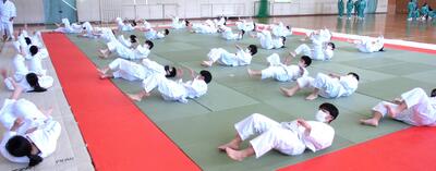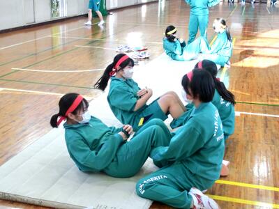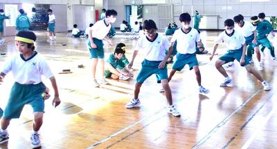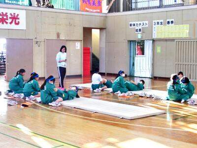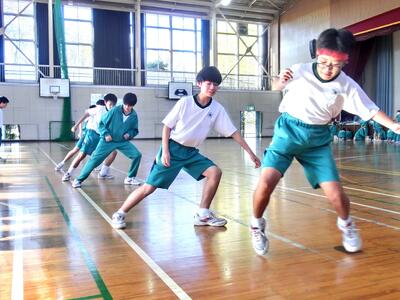 11月29日(水)、体育の授業で、柔道とダンスの単元が始まりました。本校は武道場が無いため、体育館の半分に畳を敷きつめ、ダンスと合同で行っています。礼儀を重んじ真剣に、かたや音楽をかけて軽快にと、複雑な場の設定になっています。ケガに十分注意しながら行います。