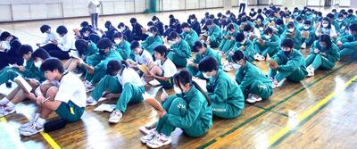11月24日(金)、2年生が体育館で「新体力テスト」を行っていました。春に第1回目を実施しましたが、2回目となります。各種目とも、きっと春よりも良い記録になっているでしょう!