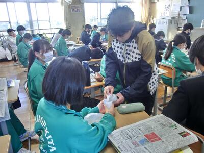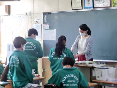 11月30日(木)3年生の総合的な学習の時間「教科発展学習」の様子です。自らが課題を考え、調査・研究し、整理して発表(表現)することをねらいとし、担当者の教科を発展させた7つのコースに分かれそれぞれ活動を行います。今日は、2つのコースの紹介です。