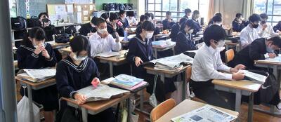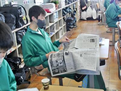 11月30日(木)、今日は月に一度のNIEタイムの日。朝読書の時間、全校で新聞を読みました。残念ながらフッ化物洗口と重なってしまい、多少のバタバタ感はありましたが、自分の興味のある記事を読む姿がありました。