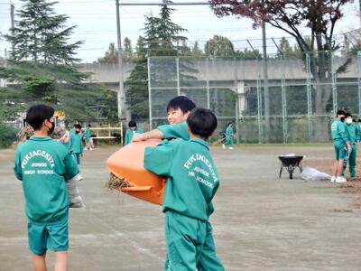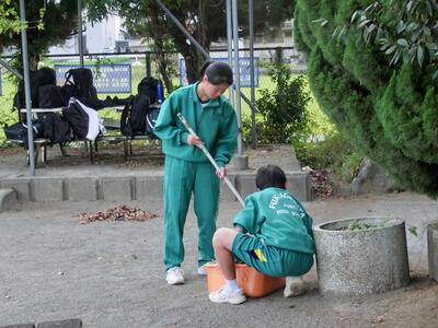 11月15日(水)、第2回目の校内ボランティアが、奉仕委員会主催で行われました。三者面談と並行しての実施でしたが、前回同様100名以上の参加者が集まりました。落ち葉や草取り、校庭の石拾い等精力的に活動しました。奉仕の心が芽吹いていますねー。お疲れ様でした!
