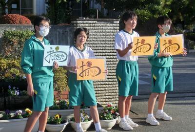 11月16日(木)、あいさつ運動「おはきた」。今日は男子テニス部の当番です。寒い朝ですが、半袖で頑張っています!!