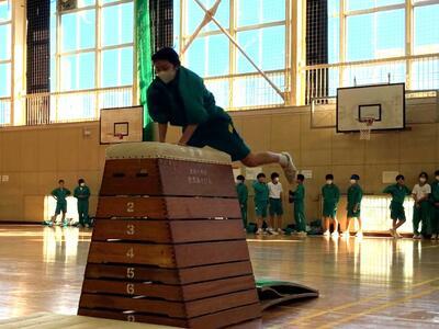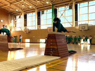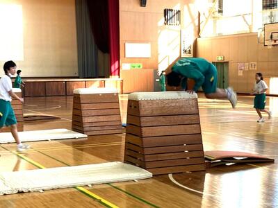 11月20日(月)3年生体育の授業で、跳び箱の実技テストを行っていたため見に行きました。それぞれが、自分の能力に合わせた跳び方や高さで、着地まで意識していました!