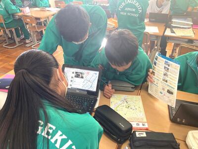 11月21日(火)、総合的な学習の時間、2年生は12月1日(金)に実施される校外学習の班別コース決めを行いました。頭を突き合わせて「あ~でもない こ~でもない」と、とても楽しそうでした。来年の修学旅行を意識しての取り組みです。実のある学習になりますように。