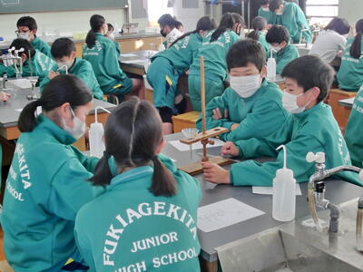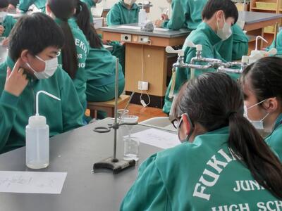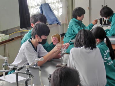11月22日(水)、さくら学級ではだるまを作っていました。「合格だるま」だそうです。上手く出来上がると良いですね。1年生理科の実験の様子。なかなかうまく行かない班もあったようです。真剣です!