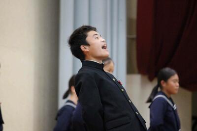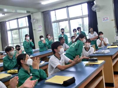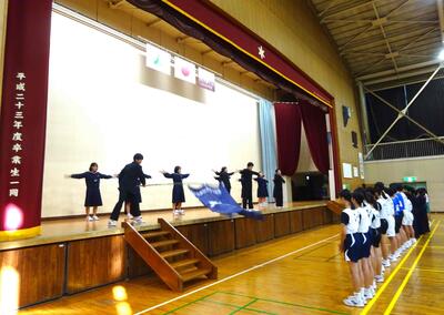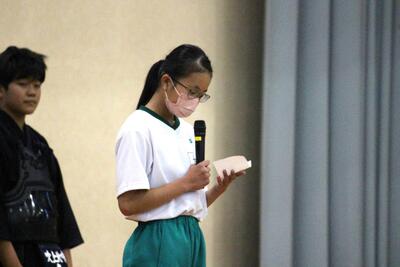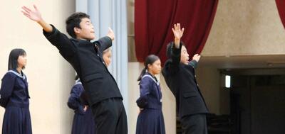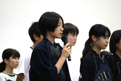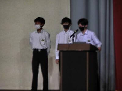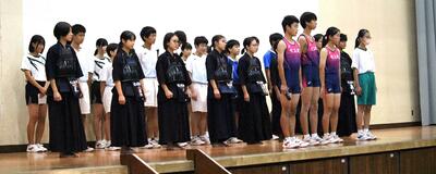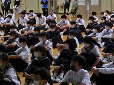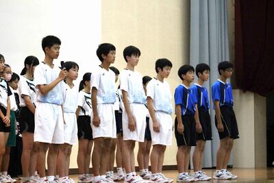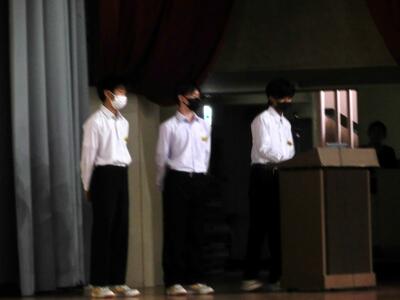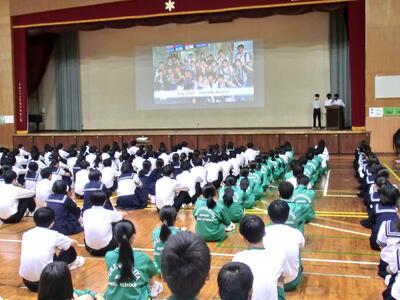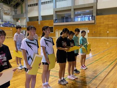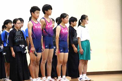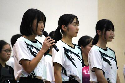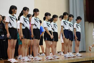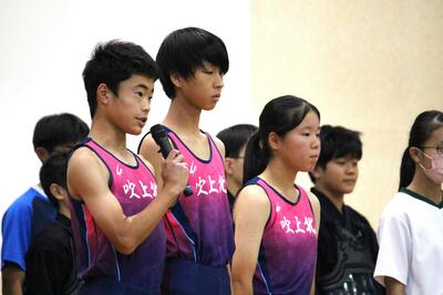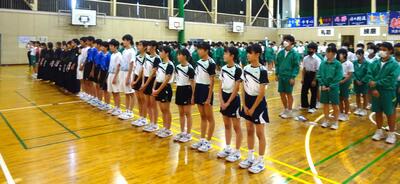 10月11日(水)、新人兼県民総合スポーツ大会県大会の壮行会を行いました。部長や出場者より決意が語られ、全校でエールを送りました。音頭をとる応援団は、3年生から後を引き継いだ2年生チームのデビューです。立派な応援でした! ガンバレ吹北中!!