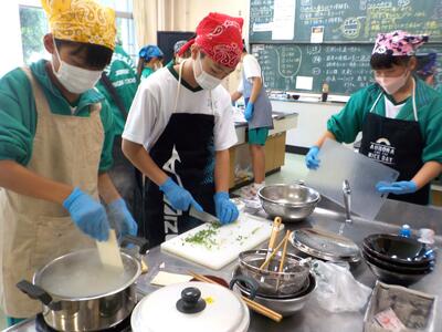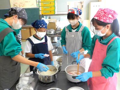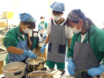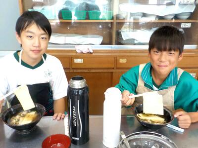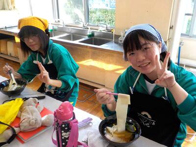 10月3日(火)、2年生家庭科の調理実習で、あの鴻巣名物「川幅うどん」を作りました。ゆでるのも難しく、すぐに崩れてしまったり、食べるのも一枚が重く腕が疲れるとのことでしたが、美味しくいただきました。食べたことがない生徒も多いようでした。