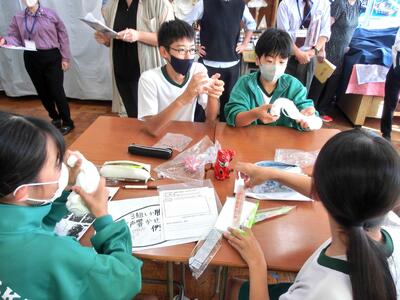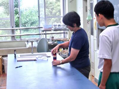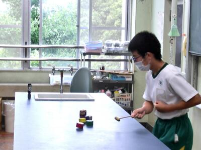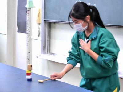 10月4日(水)、やけに理科室が盛り上がっていたため覗いてみると、「慣性の法則」についての楽しい学習を行っていました。一打一打大歓声です。きっと、頭と心に刻まれたことでしょう「慣性の法則」が!!