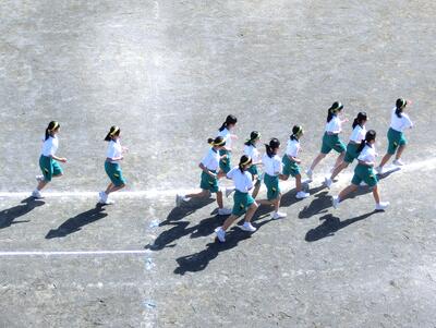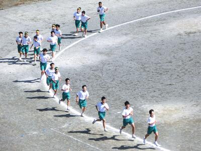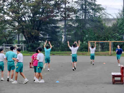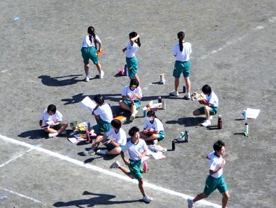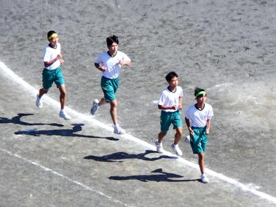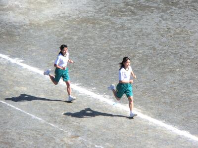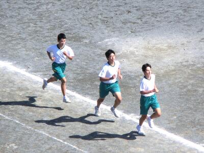 11月12日(木)、スポーツをするのには快適な気候になりました。まさに「スポーツの秋」。グラウンドでは3年生が体育の授業で持久走を行っていました。