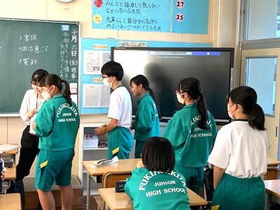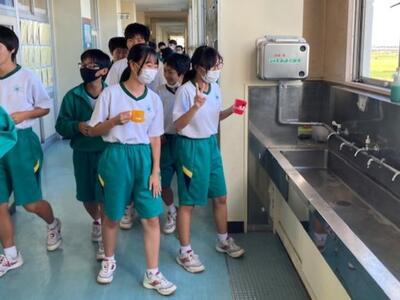 10月6日(金)、これから始まるフッ化物洗口の「練習」をしました。マニュアル動画を視聴し、実際と同じ動きの確認です。今日の中身は「水」ですが・・。朝の忙しい中での取り組みとなります。手際よく、そして大きな効果を期待して行いましょう。
