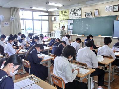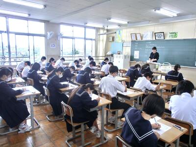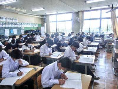 10月11日(水)、中間テストの最終日です。各学年とも残すところあと2教科となりました。最後まであきらめず、全力で!!
