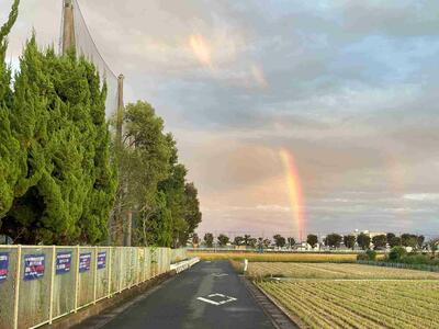 10月10日(火)、夕方激しい雨の後、東の空に虹が。まっ直ぐ上に伸びているような虹でした。明日は中間テスト最終日、天気も心もすっきりとした日になりますように!