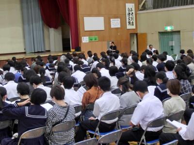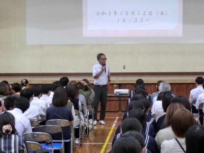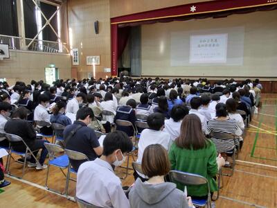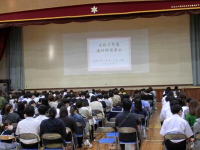 10月12日(木)、6校時に3年進路保護者会を実施しました。まずは進路選択の心構えから始まり、私立入試・県公立入試までの日程、手続き等の詳細を説明しました。多くの保護者の皆様にご参加いただきありがとうございます。いよいよですね!