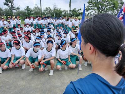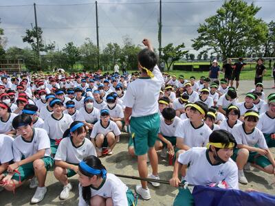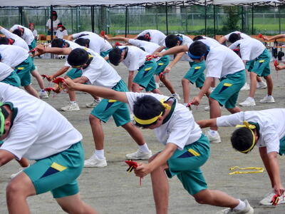 9月7日(木)、体育祭予行を行いました。9日(土)の本番に向け、本番さながらの競技を行いました。台風よそれろ!
