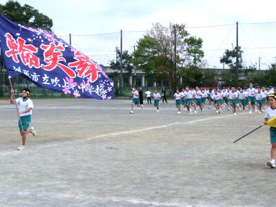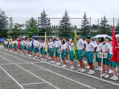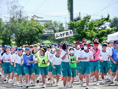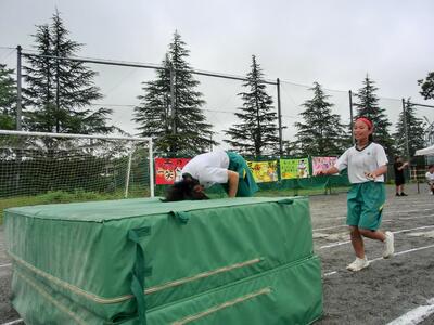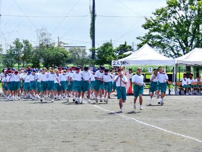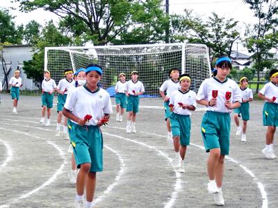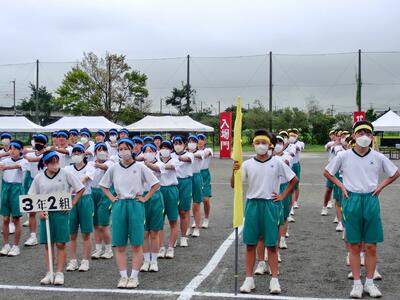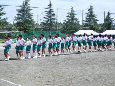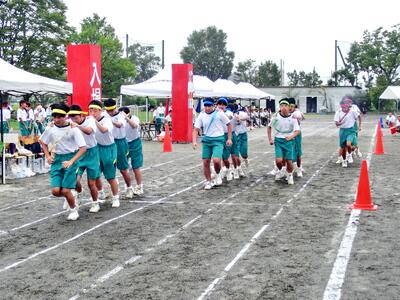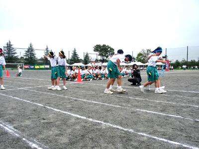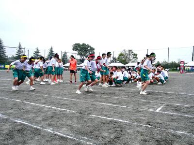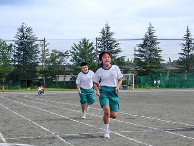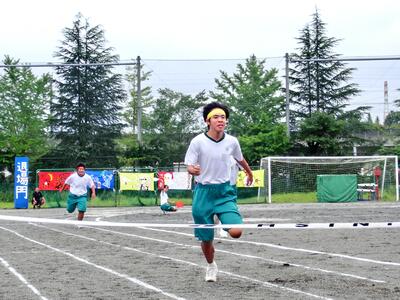 プログラムナンバー1,2の種目です。 グラウンドがまだ緩い状態でしたが、 しっかりと走り込みました! 体育祭スタートから、早速盛り上がりました! |