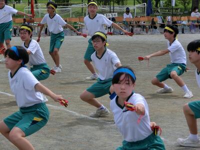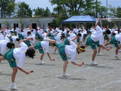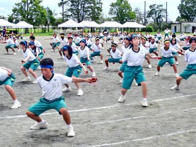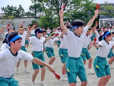 予行の最後は「よさこいソーラン」です。1年生もしっかりと踊りを覚え、自信を持って見事に踊れるようになりました。本番、3年生は伝統の法被を身にまとい演舞します。雄大な「よさこいソーラン」をぜひ見てください。