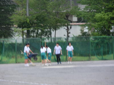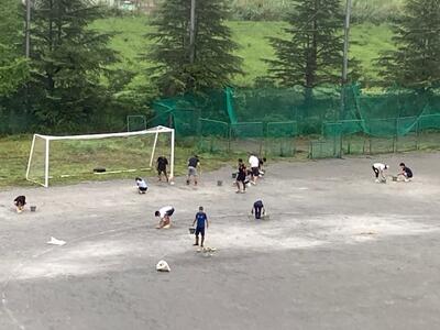グラウンド整備完了しました。皆さんお疲れ様でした!朝、メールでお知らせしたとおり、生徒は8:50着席、9:00開会式となります。よろしくお願いします。