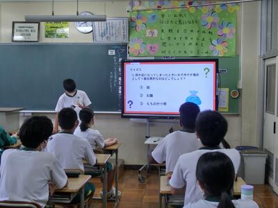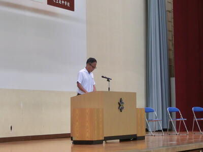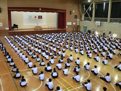 7月13日(木)、生徒朝会を、保健委員会主催で各教室にて行いました。熱中症についての動画(演者は保健委員)を見ながら、注意事項やクイズを交えて説明をしました。保健委員会の皆さん、準備からお疲れ様でした。