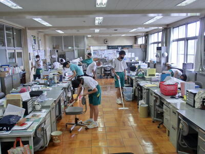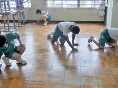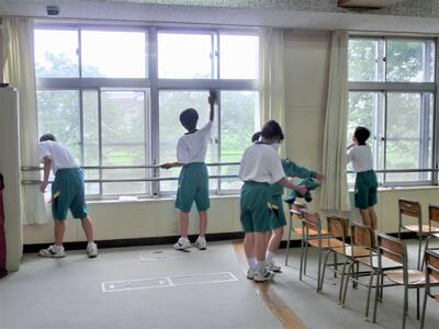 7月19日(水)、大掃除、ワックスがけを行いました。普段からしっかりとやっていますが、特に細かいところまで念入りに。夏休みを前に教室も、廊下も、心も「整いました」!!