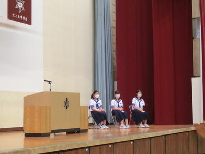 7月11日(火)、JRC登録式を行いました。猛暑を見越して本年度はあらかじめ放送による登録式を予定しており、生徒会が趣旨を説明し、各クラスその趣旨に賛同した者が署名をしました。