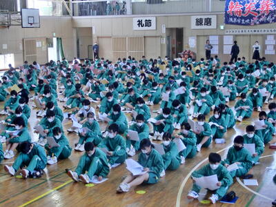 4月18日(火)、3年生は全国学力・学習状況調査に臨みました。5月には埼玉県学力・学習状況調査が続きます。※テストの邪魔にならぬよう廊下窓から撮影したため画質が悪いです。
