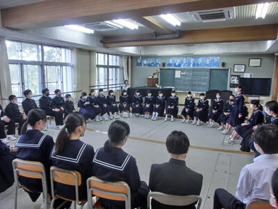 4月12日(水)、全校揃っての対面式、部活動オリエンテーションを行いました。吹奏楽部の演奏に乗って1年生が入場。生徒会からの話や、吹上北中学校伝統のよさこいソーランの披露。そして各部活動の紹介等、盛りだくさんに2時間を過ごしました。今日から1年生は部活動見学が始まります。