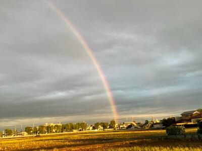 夕方、雨上がりの後にきれいな虹がかかりました。