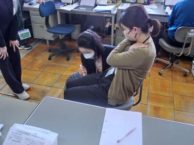 4月4日(火)、職員会議の中で、食物アレルギー緊急対応のための研修会を行いました。アナフィラキシーショックを起こした場合のエピペンの使用の仕方について、全教職員が理解をしました。