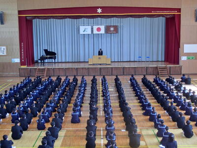 3月22日(水)、1,2年生共に最後の学年集会を行いました。「北斗賞」(善行生徒表彰)の発表・表彰。そして学年の先生方から、まとめの話をしました。1年間で、しっかりと成長できました。