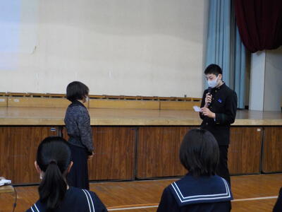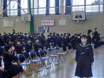 3月8日(水)3年生を送る会を実施しました。1,2年生はスキー林間の合間を縫っての練習、3年生は受検と、皆忙しい中での取り組みでしたが、各学年とも、心のこもった発表でした。公開できないのが残念です。