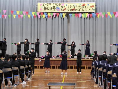 3年生は、呼びかけ、そして見事な迫力のある歌を披露しました。先輩からのメッセージ、1,2年生はしっかりと受け止めました。先生たちも思い出のスライドや、普段では見ることの出来ない姿で「おめでとう!」の気持ちを表しました。
