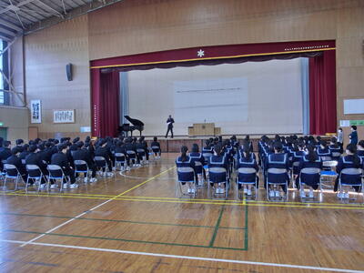 3月10日(金)、2年生進路キャリア教育の一環として、「進路講演会」を実施しました。講師には本校卒業生であり、サーパス工業株式会社 代表取締役社長 今井高志様をお招きし、ご講演いただきました。ご自身の学生時代や海外に留学時の経験が現在につながっているということ。また、これから社会に飛び立つ中学生には日本や世界に目を向けて欲しいという願いが込められたお話でした。お忙しい中ありがとうございました。