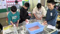 理科室で何やら紙コップに液体を入れてグルグルとこねている姿を見つけました。「スライム」を作っているそうです。液体の量を変えたり、レモン汁を入れたり、食塩を入れたりとかたさに変化をつける実験をしていました。好きな色に着色し触り心地を確かめていました。子どもの頃が懐かしい。