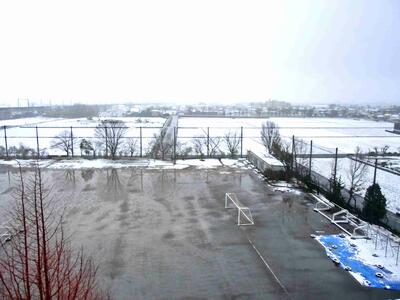 おはようございます。また雪になりました。先日と同じ景色が広がっています。今は雨に変わっているので、積もることはないと思いますが、登校には十分気をつけてください。今日は「三送会」が行われます。各学年の発表を楽しみにしています!